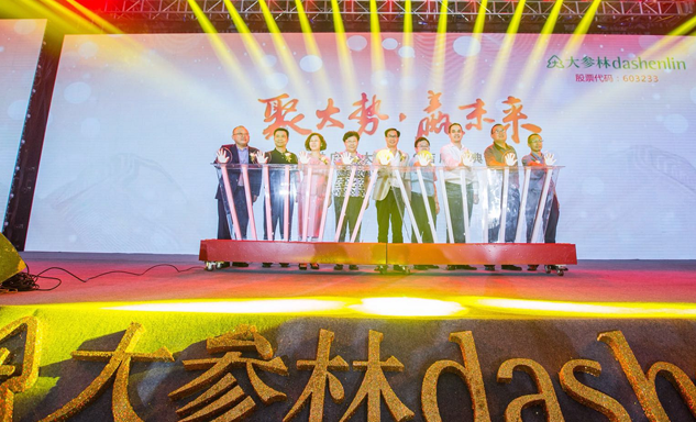 人生就是搏药业集团董事长刘景萍女士与大参林医药集团董事长柯云峰先生、中国医药商业协会执行会长付明仲女士等嘉宾共同开启了“聚大势•赢未来"大参林工商合作峰会的大幕。